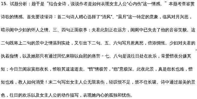 15. 結(jié)合全詩,說說作者是如何表現(xiàn)女主人公“心內(nèi)傷”這一情感。